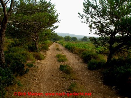 schon hauchzarte Grün der Pinienbäume ist zuweilen schon fast anrührend. Immer wieder bieten sich fantastische Blicke. Des Öfteren kommt man in Gebiete, in denen die Vegetation vor nicht allzu langer Zeit verbrannt sein muss, sich aber schon wieder mit frischem Grün ausbreitet. Bei diesem Anblick beschleicht einen doch unwillkürlich ein Gedanke: bitte kein Brand