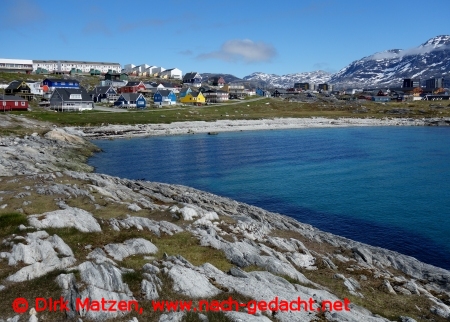 Und natürlich braucht eine solche Nation eine Hauptstadt. Und diese heißt "Nuuk". Früher, als Grönland noch eine dänische Kolonie war, hieß die Stadt "Godthåb" - zu deutsch: "Gute Hoffnung".