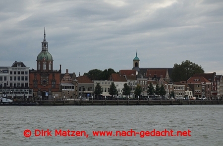 Bei der Anfahrt mit der Fähre nach Dordrecht zeigt die Stadt gleich ihre Schokoladenseite. Es ist in den Niederlanden ja nicht unbedingt etwas besonderes, aber Dordrecht kann man mit Fug Recht als Stadt am Wasser bezeichnen.